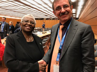 H.E. Ms. Yvette Stevens, Ambassador Extraordinary and Plenipotentiary of Sierra Leone at UNOG talked at the United Nations in Geneva with the Secretary General of the AIDLR, Dr. Liviu Olteanu
